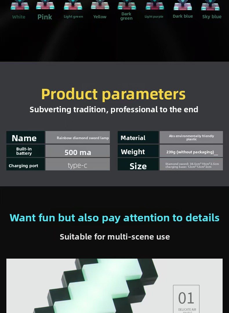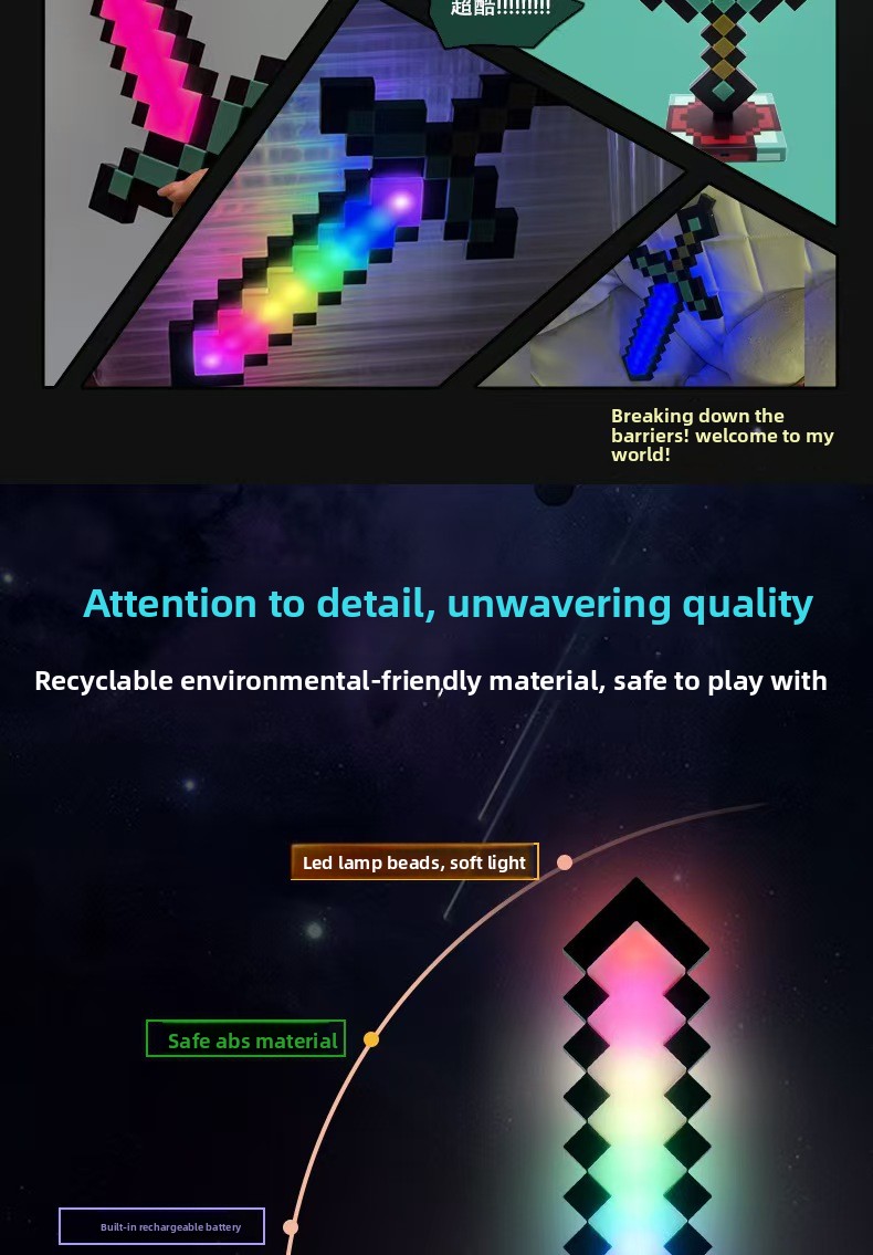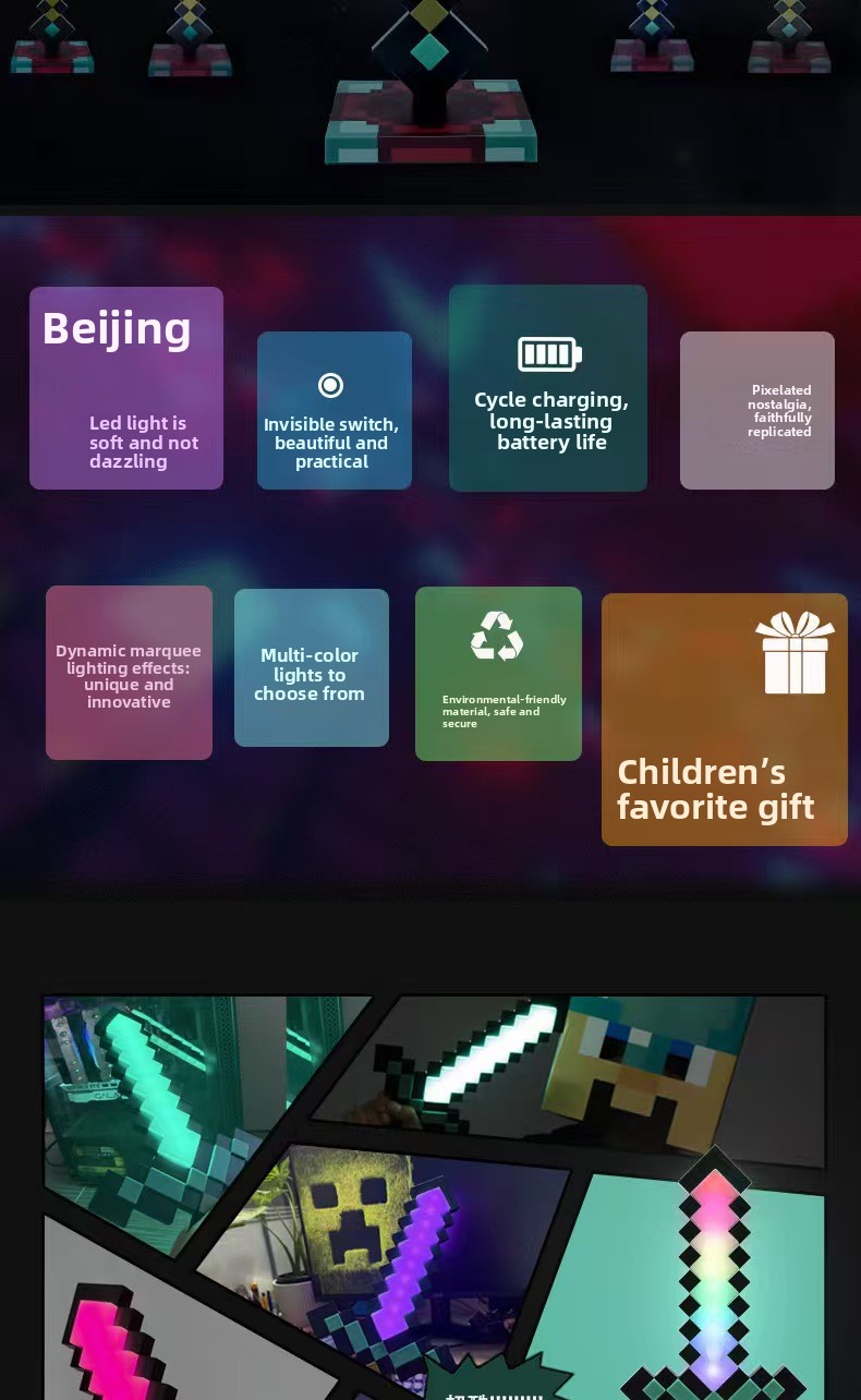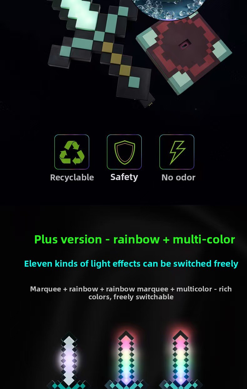 OverviewColor Changing: Features 7 or 11 dynamic color options with smooth transitions for vibrant lighting effects.Sword Design: Unique Minecraft diamond... Read more